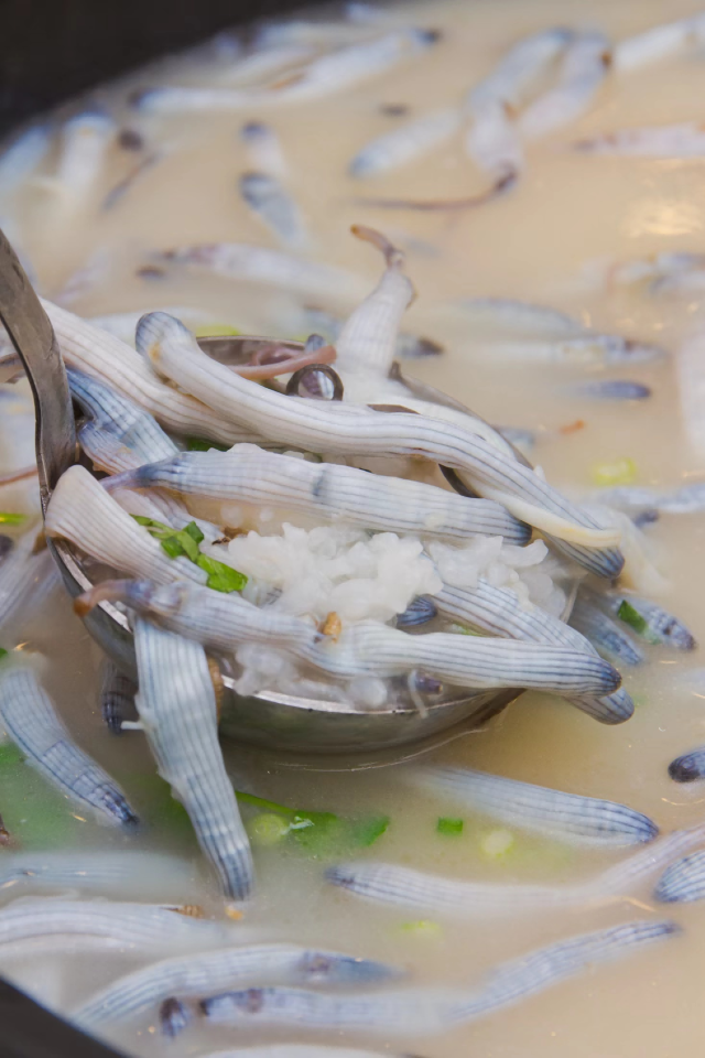 夜已深,宵夜烟火味正浓,一锅热气腾腾的泥丁粥是很多“老湛”的心头爱。“泥丁”在当地又称“土丹”,泥丁长年活动于滩涂上,口感较韧,当地人喜欢用来煲粥。富含蛋白质的泥丁,具备脆、甜、嫩的特点,轻嚼几下,泥丁渗出的汁水,瞬间激活整个口腔的味觉细胞。