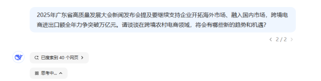 Deepseek:在2025年广东省高质量发展大会新闻发布会上提出的“跨境电商进出口额全年力争突破万亿元”目标中,跨境农村电商作为重要组成部分,将迎来政策、技术、市场等多维度的新机遇。结合广东省的产业布局与全球跨境电商发展趋势,以下是该领域可能呈现的趋势和机遇分析: