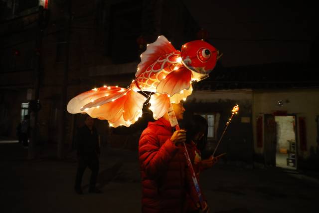 元宵节时,北坡镇满是喜庆年味儿。北坡老圩的游鱼集市最为热闹,五彩鱼灯挂满枝头,如梦似幻。集市里人来人往,除了鱼灯,还有特色小吃和手工艺品。摊主热情招揽,叫卖声、欢笑声交织在一起。