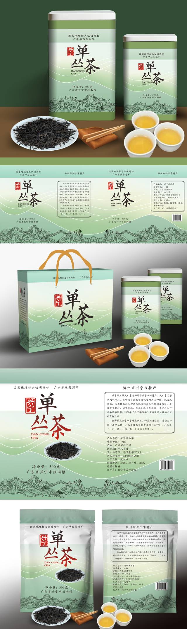 会上还进行了由兴宁市茶叶协会主办、径南镇人民政府和省乡村振兴驻径南帮镇扶村工作队指导的“兴宁单丛茶”品牌包装形象设计活动终审环节。据统计,本次活动吸引了来自全网包装设计师的积极参与,共收到有效作品30件。经过作品初筛和初审,共15份作品脱颖而出进入终审环节。按照《“兴宁单丛茶”品牌包装形象设计活动终审评选办法》,专家评分从作品的创意性、吸引力、功能性和可行性等等维度对作品进行公正打分。综合专家评分与网络投票结果,最终评选出一等奖、二等奖、三等奖。获奖名单如下: