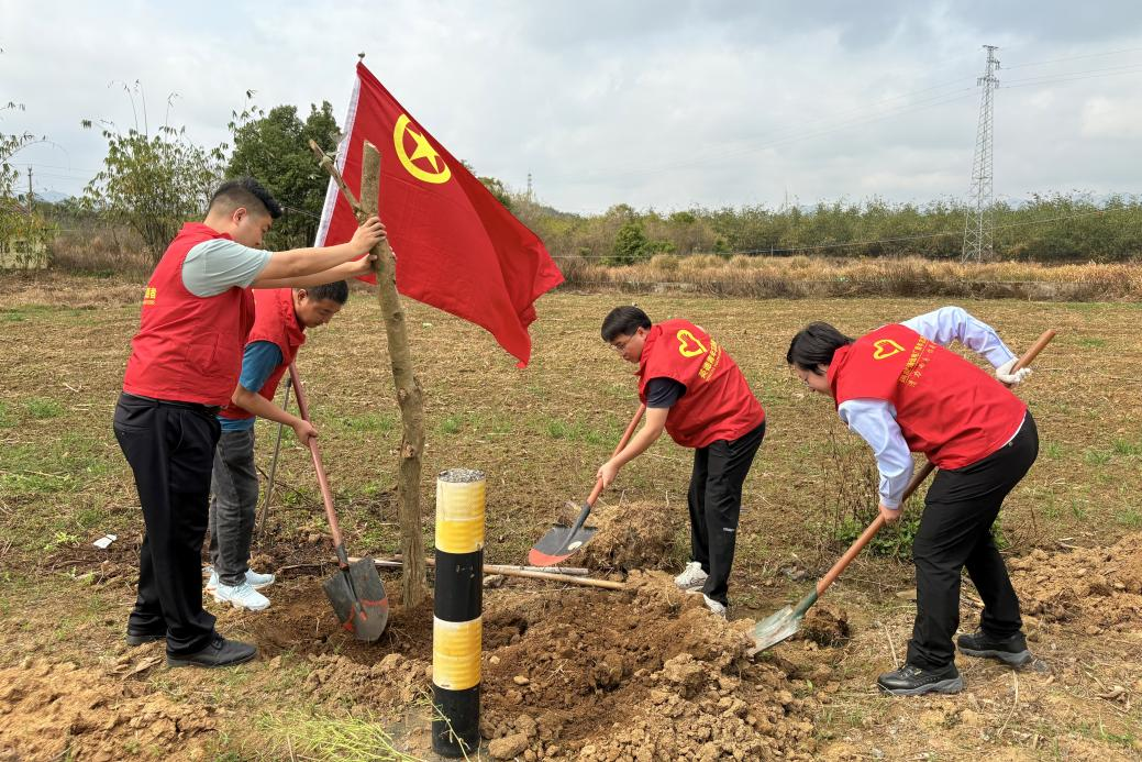 挥锹铲土、夯地浇水……3月13日,由团英德市委、团西牛镇委共同承办的绿美广东 青年先行——2025年英德乡村绿化主题行动暨学雷锋全民志愿服务月青少年义务植树活动在广东省首批“百千万工程”典型村——英德市西牛镇小湾村举办。该活动旨在深入贯彻落实团省委关于“绿美广东 青年先行”的工作部署,深入推进市委市政府关于推进绿美英德生态建设工作安排,70多名党员干部、“两红两优”优秀集体和优秀团员、优秀创业青年、乡村振兴志愿者争先表率,做好“绿水青山就是金山银山”理念的传播者和践行者,现场呈现出一片热火朝天的景象。