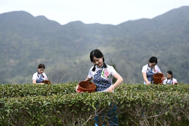 活动期间,游客可化身“茶农”,在世代种茶人的指导下,挎竹篓、穿茶衣,深入碧波荡漾的生态茶园,亲手采摘春茶嫩芽。