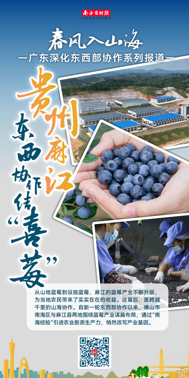 2022年,佛山市投入900万元东西部协作资金,建设蓝莓种植高效示范园和精深加工车间项目,延长产业链条,做精做优水果精深加工,致力于打造东西部协作高效示范农业的典范。随后,以每年近1000万元东西部协作资金,佛山市持续对麻江县蓝莓加工产业加强投入力度,以广东“工业化发展农业”的思维改变麻江当地蓝莓产业生态。