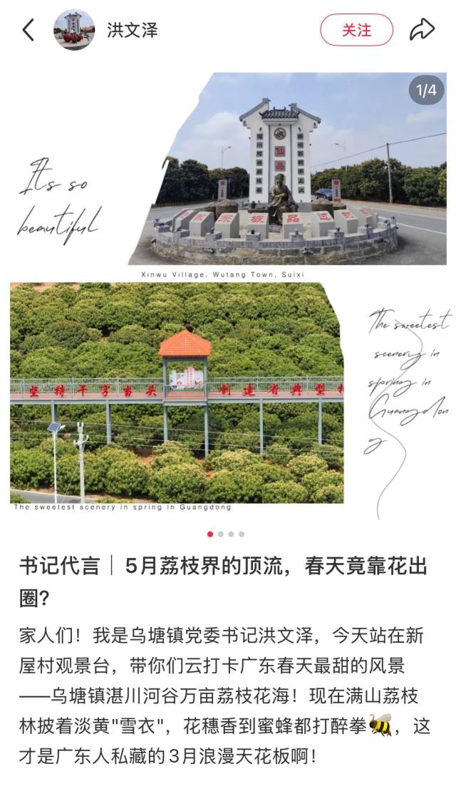3月26日,首条种草“仙品荔”图文在小红书发布后,吸引了众多网络关注。“家人们,今天站在新屋村观景台,带你们云打卡广东春天最甜的风景——乌塘镇湛川河谷万亩荔枝花海!”这份真情流露,瞬间拉近了他与全网用户之间的距离。数张不同角度拍摄的风景照,唯美地呈现出乌塘镇百年荔林在三月的盛景:林间绿意盎然,荔枝花繁花似锦。被荔枝林环绕的农家庭院,处处洋溢着浓郁的生活气息,让新农村展现出勃勃生机。