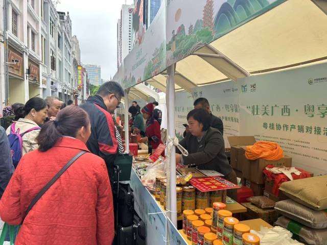 在北京路千年商脉的时空坐标下,壮族歌圩对唱与广府骑楼文化形成文明对话,五色糯米饭制作技艺与岭南饮食文化展开深度交融。活动期间,主办方还邀请了主播达人进行全天候直播带货,让湾区市民足不出户即可选购到地道的“舌尖上的广西”,生动展示了“消费即帮扶”,使活动成为文化交流与产业合作的盛宴。