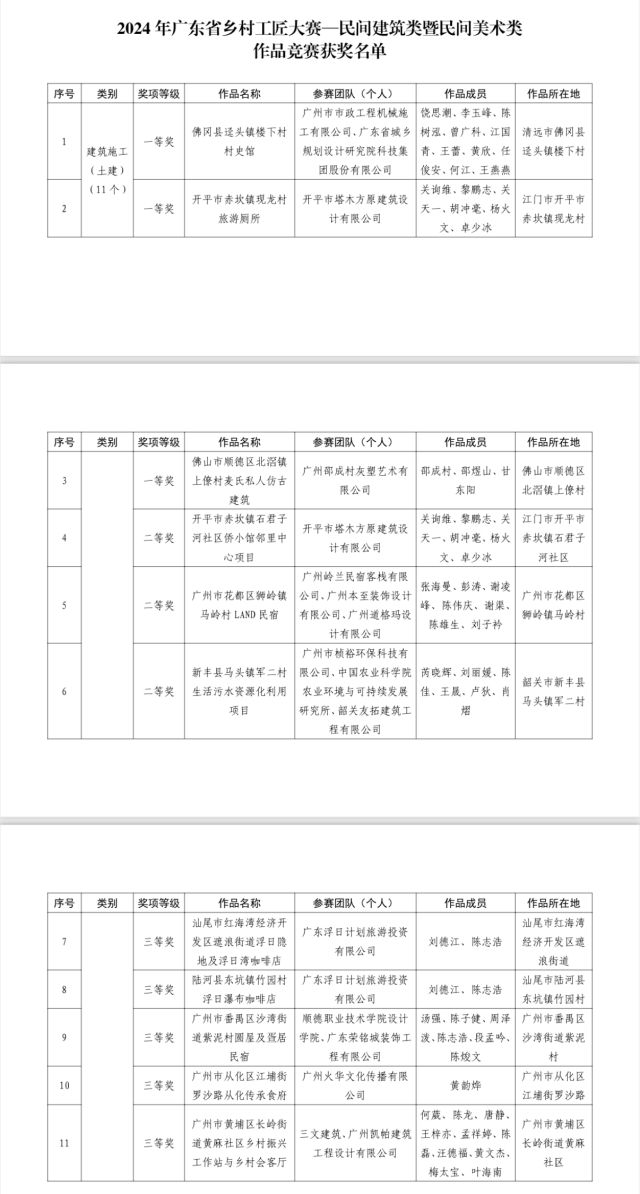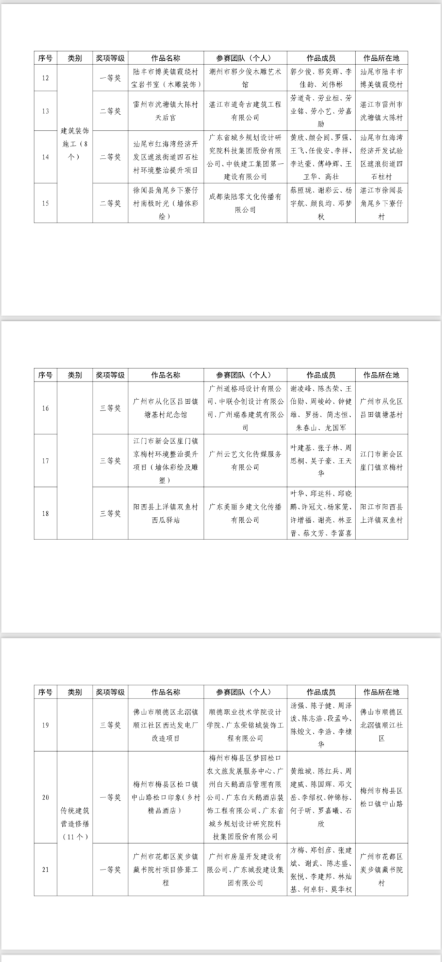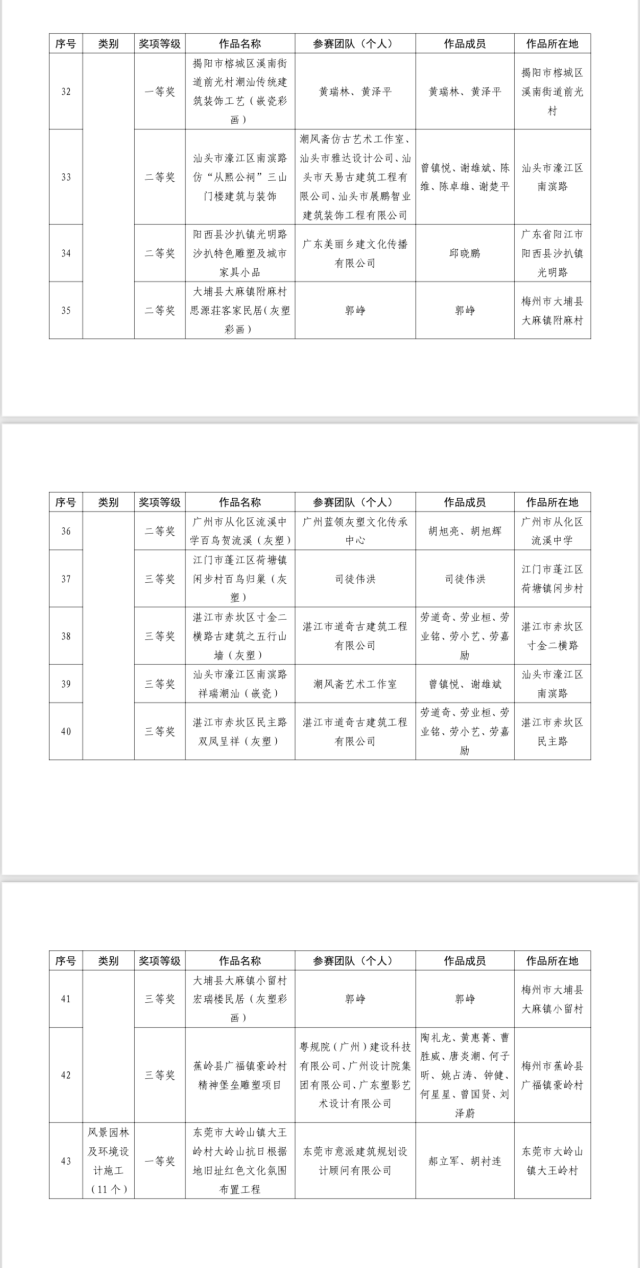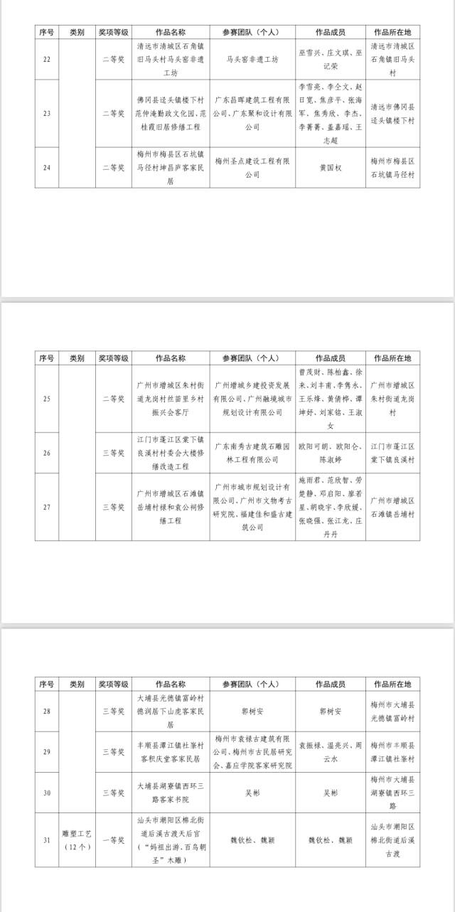 日前,广东省农业农村厅官网公示了2024年广东省乡村工匠大赛——民间建筑类暨民间美术类作品竞赛获奖名单,来自全省21地市共53件作品入围。其中,一等奖10个、二等奖18个、三等奖25个。