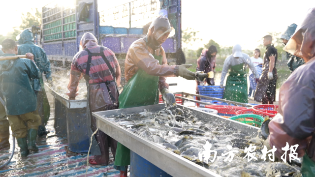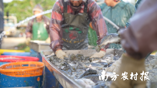 清晨五点,当城市还在沉睡,清远市清新区太平镇裕兴村的鱼塘已然呈现出一派“鱼跃人欢”的丰收景象,肥美的清新桂花鱼翻腾跳跃,捕鱼工人们身着高腰水裤和长筒水靴,熟练地拉网、分拣、称重,随后将清新桂花鱼装车运往各地。