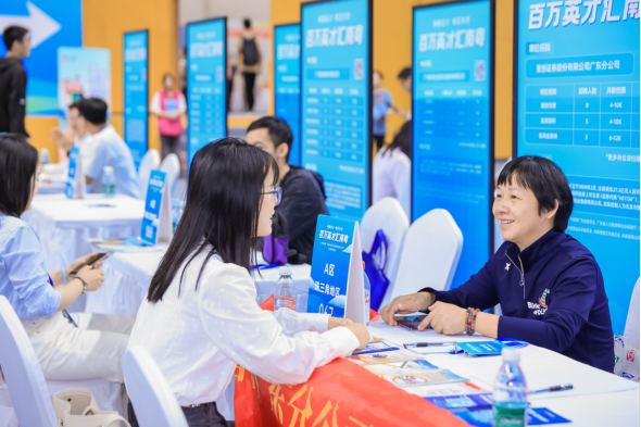 现场设置了“青春助力百千万”兴乡青年招募专区,通过招募志同道合的合伙人扩大广东兴乡创业人才队伍,众多求职学子被青年兴乡培育计划吸引投递。据了解,广东“百千万工程”青年兴乡培育计划实施两年来,致力于提升学员乡村经营素养和能力,为有志于投身乡村振兴的创新创业青年提供展示平台、搭建合伙人选择机制,激励广大青年投身兴乡创业工作,打造县域特色农产品和文旅项目,赋能县域经济发展。