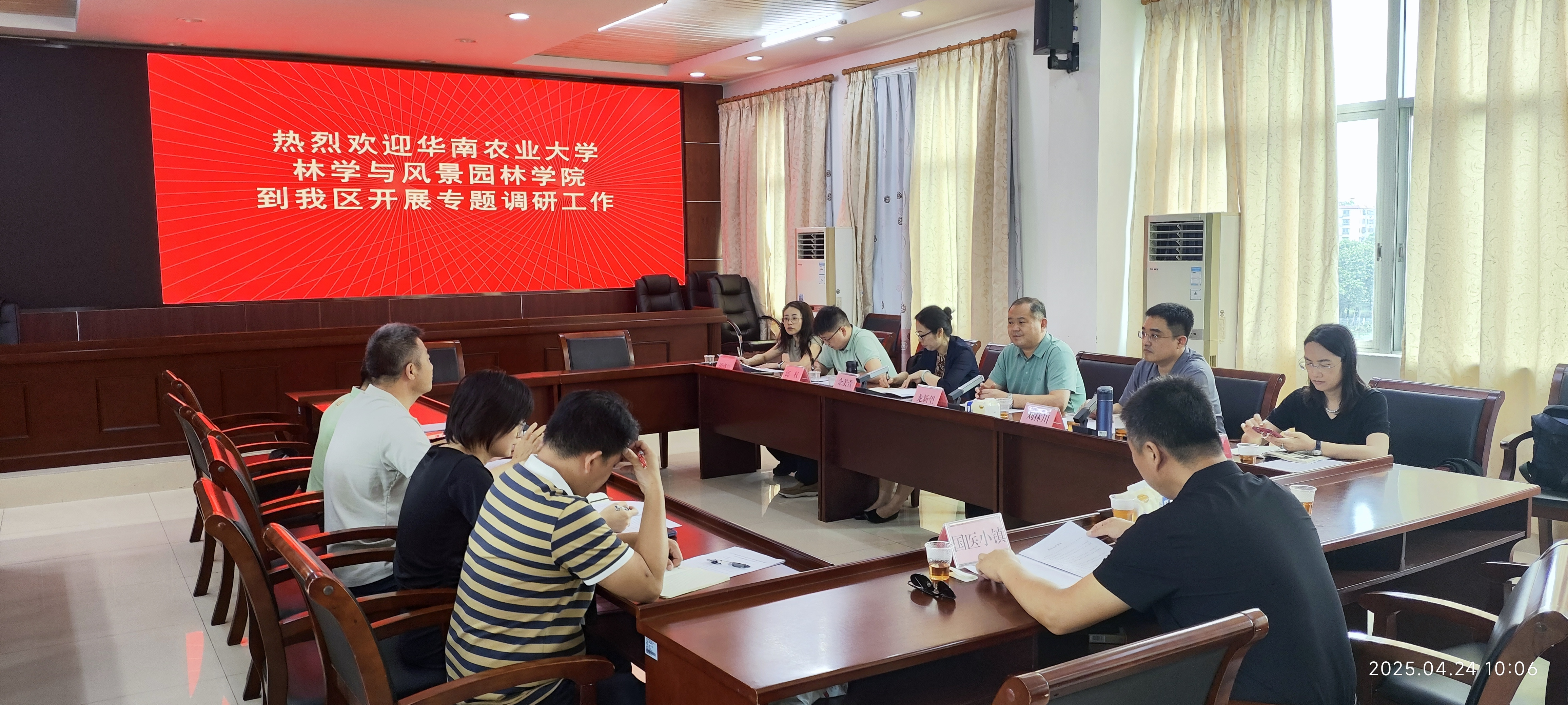 近日,华南农业大学林学与风景园林学院党委书记龙新望率专家团队赴广州市从化区专题调研指导,助力从化绿色发展示范区建设,赋能打造大湾区生态产业化先行标杆。从化区孙凌洁副区长出席活动。