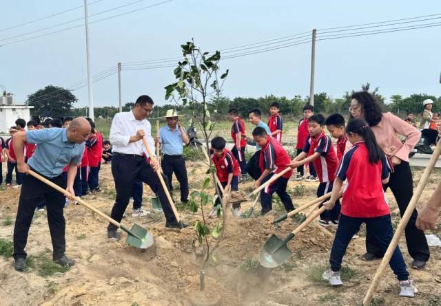 为落实党委、政府关于深入推动乡村绿化的部署要求,充分发挥党建带团建的作用,近日,团湛江市委打造“湛江市少先队基层示范点”与“绿美湛江”主题实践活动在吴川市同步开展。团湛江市委副书记李栩敏、团市委学校部部长朱凌霄到乡镇小学示范点指导推动,吴川市委常委、组织部部长黄勇、黄坡镇党委书记魏华桂、团吴川市委书记陈志健等共同参加主题实践活动。通过推广基层少先队建设成果、创新入队仪式形式,以“红领巾”为纽带,推动组织教育、生态文明教育与劳动实践深度融合,为新时代青少年成长注入红色基因与绿色动能。