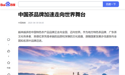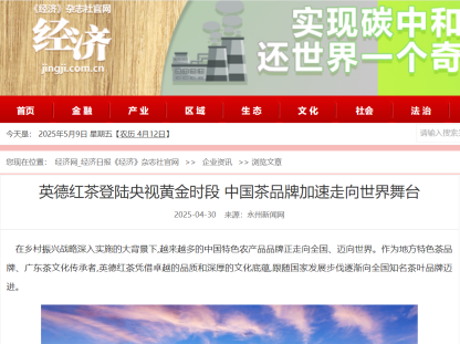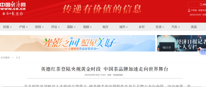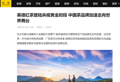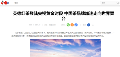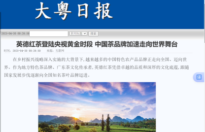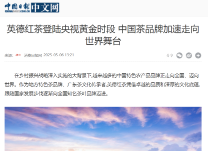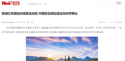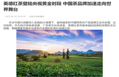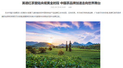“五一”期间,清远英德红茶形象宣传片登陆央视黄金时段,并从4月30日一路持续至5月29日,诚邀全球茶客共游“世界红茶之乡”,同饮“世界高香红茶”。