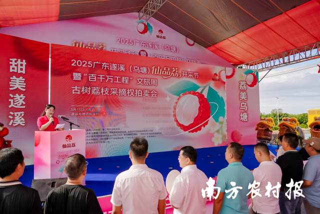 5月15日,2025广东遂溪(乌塘)仙品荔开采活动暨“百千万工程”文旅周在湛江市遂溪县乌塘镇新屋村举行。作为广东省最早上市的荔枝产区,今年湛江全市荔枝种植面积约40万亩,预计产量超26万吨,其中,来自遂溪县的仙品荔堪称湛江荔枝的“明星”。