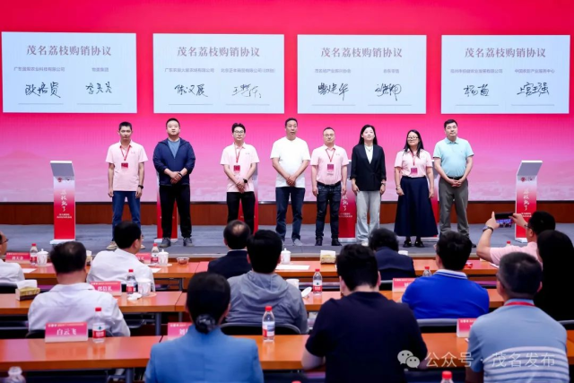 活动现场,茂名多家荔枝企业与北京商超、批发市场、电商基地等签订战略购销协议。广东盈聚农业与物美集团、广东农垦火星农场与北京正丰商贸有限公司、茂名墟产业振兴协会与京东零售、高州市伯健农业发展有限公司与中国农影产业服务中心分别签订购销协议,助力茂名荔枝开拓京津冀市场。