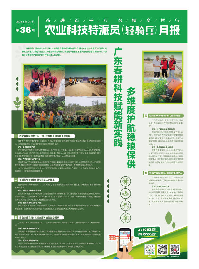 广东春耕的核心抓手之一,是发挥农业科技特派员的技术支撑作用。全省以“需求导向、精准服务”为原则,推动农业科技特派员深入田间地头,构建起覆盖选种、种植、管护到采收的全周期服务体系。