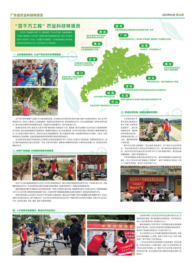 2025年,全省围绕“科技下沉、服务精准、产业升级”目标,构建起覆盖生产指导、疫病防控、生态保护、技能培训的全链条服务体系。通过“农业科技特派员(轻骑兵)”小分队、“农友圈”平台等载体,广东将科技服务从季节性春耕延伸至全年常态化行动,为乡村振兴注入持续动能。