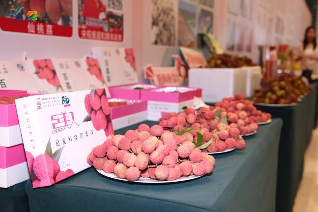 推介会现场展出的阳西荔枝等名特优农副产品。