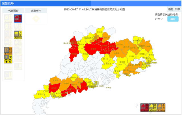 怀集暴雨红色预警信号扩展至全县,15县暴雨红色预警继续生效