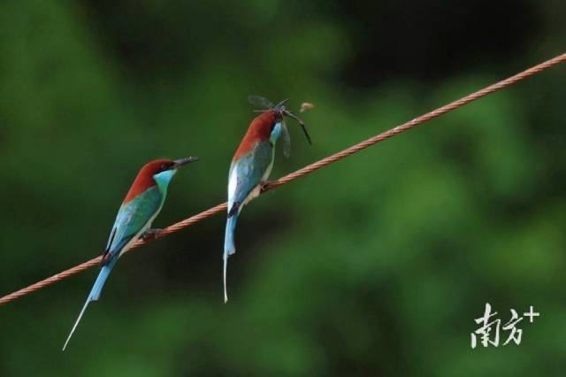 近日,一群摄影发烧友在河源市万绿湖景区再次拍摄到了被誉为“中国最美小鸟”的蓝喉蜂虎。这些美丽精灵的现身,不仅为万绿湖增添了灵动之美,也从侧面反映出当地生态环境的持续向好。