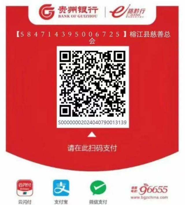 银行账户名称为:榕江县慈善总会