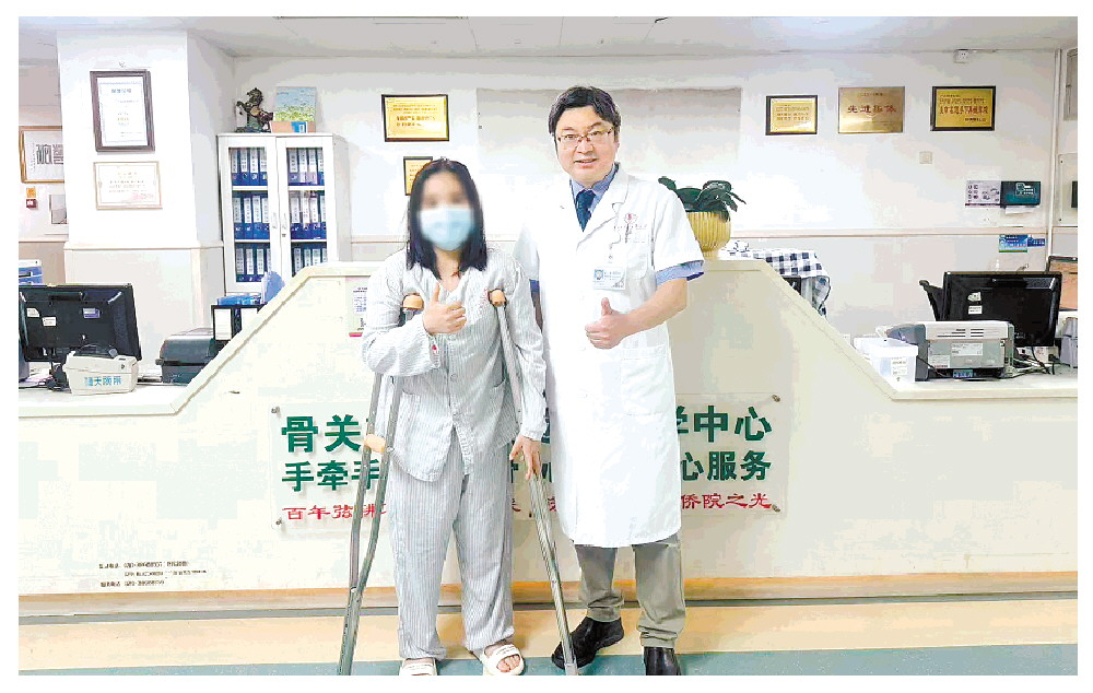术后第二天,小钱即扶拐下地行走。一周后出院返美,两个月恢复学业。