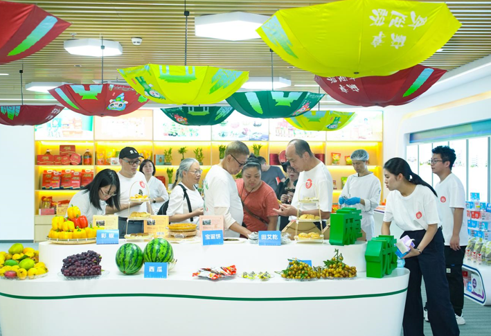 设立麻章区农渔土特产品展销区,联动麻章区多家优质企业,集中展示麻章特色产品。这一年,“飞地”组织麻章区企业携带农渔土特产品和特色IP形象文创产品,先后参加2024第三十二届广州博览会、广州市庆祝2024年中国农民丰收节主会场活动以及白云区相关职能部门、镇街举办的多场展销活动和党建文化活动。