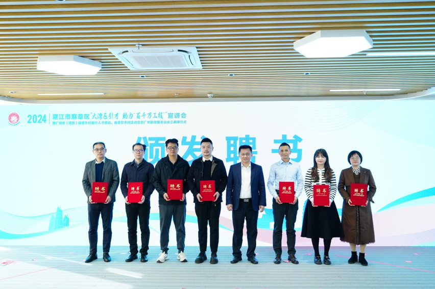 11月,举办2024年湛江市麻章区“大湾区引才助力‘百千万工程’”宣讲会,广州市(湾区)麻章乡村振兴人才驿站、麻章区农村流动党员广州联络服务站正式揭牌。