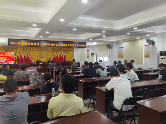 为了聚焦实施“百县千镇万村高质量发展工程”,强化农村科技特派员责任担当,推进县域涉养区生猪养殖恶臭物及臭气治理技术应用与示范推广。近日,揭西县京溪园镇人民政府、驻镇帮镇扶村工作队联合广东省农业科学院动物科学研究所科技特派员,举办了“生猪养殖场恶臭物及臭气治理技术”相关专题培训班。