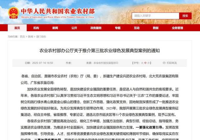 近日,农业农村部公布第三批农业绿色发展典型案例名单,31个农业绿色发展典型案例获得全国推介。其中,广东省河源市东源县凭借“天选地育稻肥循环勾勒‘绿富美’田园画卷”的创新实践,成为广东省唯一入选的县(市、区)级案例。此次推介旨在发挥典型引领作用,推动农业资源集约利用、产业生态化转型,为乡村振兴提供可复制的绿色路径。
