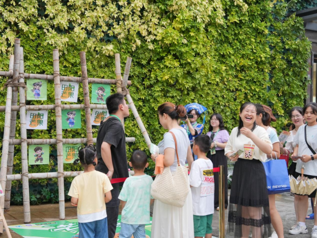 在“壮山农鲜”互动体验区内,市民游客们排起长队,参与趣味挑战赢取芒果礼品。
