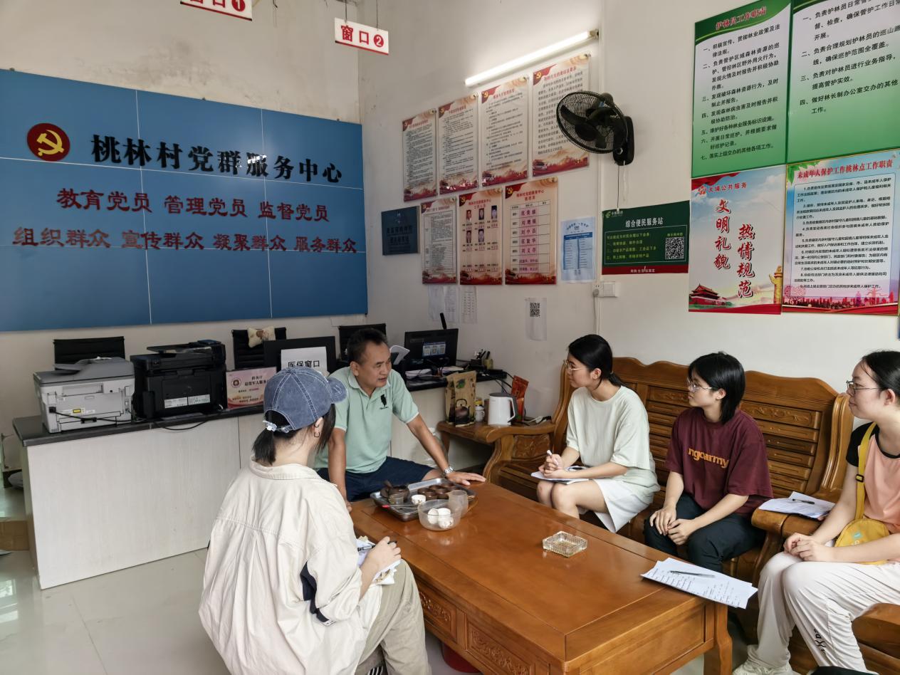 图:团队在青溪镇桃林村与村委书记及村民交流