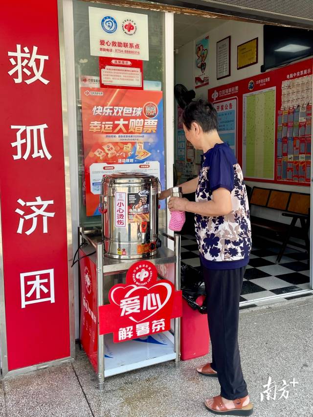 走近汕头福彩综合体验中心,大门口显眼位置摆放着一个免费解暑茶自助摊位,炎炎烈日下,不时有过往市民和户外工作者前来自取饮用。“平时很多环卫工人、快递员、外卖骑手都会来喝,我们临近龙眼南路美食街,暑假游客很多,有时候他们也会来喝一杯。”中心工作人员马柔霞说,免费解暑茶供应从每天上午10点持续至下午6点,期间解暑茶供应不限量,市民群众可以自取饮用。