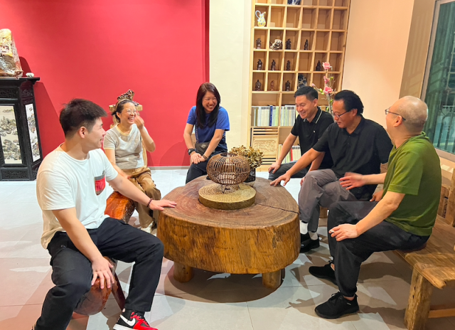 团队最后一站来到广福镇桃花源景区,与驻镇帮镇扶村驻广福镇工作队队长郭勇、景区负责人钟明雄等深入探讨3A景区申报进展。该景区占地1100亩,是集鹰嘴桃种植、梅花鹿养殖、民宿餐饮、休闲观光为一体的综合性农文旅项目,2022年已获评“梅州市休闲农业与乡村旅游示范点”。艺术设计学院团队对景区游览图、景观标识系统等提出了专业建议,并承诺全力支持景区申报所需的各类设计工作,助力打造“蕉岭版丽江”的文旅名片。