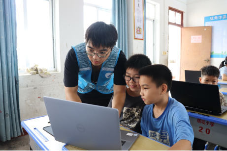 支教组成员与小朋友开展编程实践