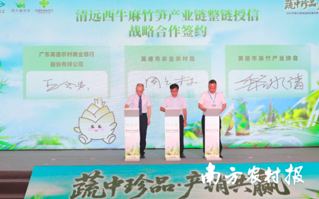 央广网广东站、南方农村报社、北大荒融媒体、清远日报社、清远市广播电视台、英德市融媒体中心等媒体代表共同发布了“媒体+”聚力西牛麻竹笋产业高质量发展行动方案