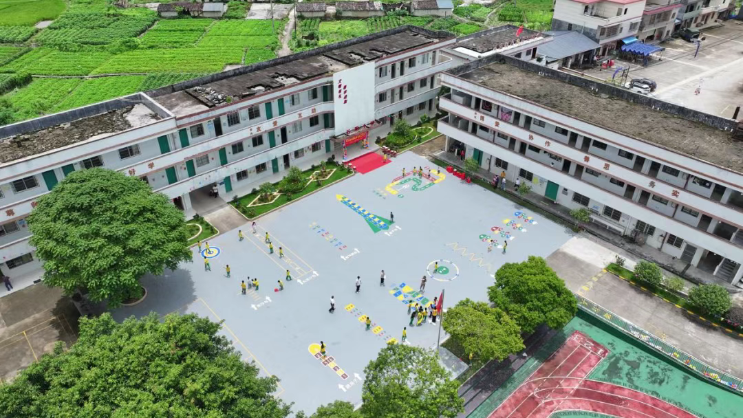 陈钰瑶迅速行动。2025年5月,得益于她提交的提案,“青春同行 公益筑梦”项目启动,广东省体育彩票中心联合广东狮子会,共同支持石明小学操场升级改造。在社会组织和爱心人士的合力下,仅一个多月,原本破败的1075平方米操场便完成蜕变。崭新的运动场地平整安全,还依据小学学科知识绘制了主题彩绘,成为校园亮丽的风景线。