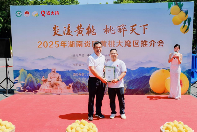 活动现场,炎陵县农业农村局局长吴集会向钱大妈颁发《国家地理标志产品授权证书》,强化品质承诺——未来消费者在钱大妈购买的每一颗黄桃,均为经严格认证的“炎陵原产地正品”。