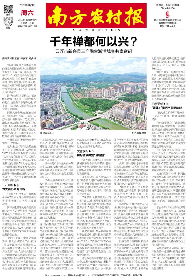 从禅文化的基因解码,到三产融合的产业重构,再到全域规划的系统推进,新兴县持续催生出“1+1+1>3”的乘数效应,在广东“百千万工程”的浪潮中,出圈、出新、出彩,以实干担当挥写城乡共富新篇章。