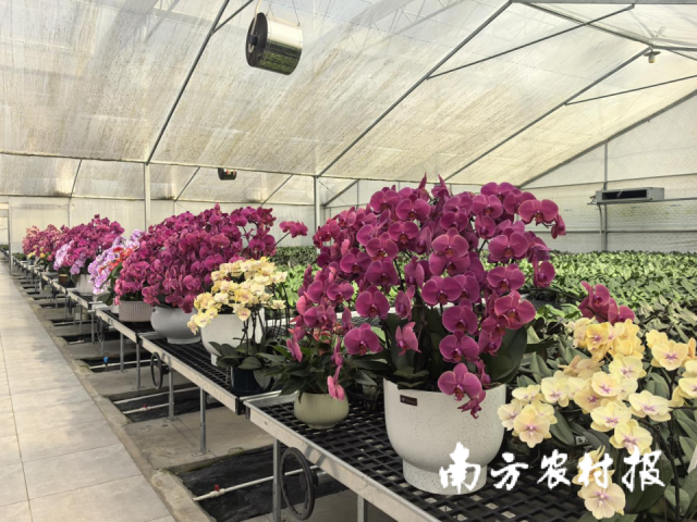 “目前,产业园已集成育种组培、冷链仓储、电商直播等多种基础设施,建成242亩、8.45万平方米智能温控大棚,引进广东企业5家,其中亿成花王、浩宇、仙那、万佳4家已投产,深圳市丽景等12家达成投资意向。”该负责人说,2024年产业园区花卉销售额已达1.83亿元,产品销往日韩、东南亚及江浙、广东等地,全面建成后可年产蝴蝶兰种苗400万株、精品兰花2000万株、商品兰花900万盆,年产值达2.7亿元。