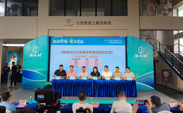 活动现场,陈皮村与6家果农代表签署2025年鲜果采购意向协议,彰显平台与供应端的深度联动。新会陈皮村相关负责人表示,陈皮村作为新会陈皮产业三产融合示范基地,将继续发挥平台优势,推动产业链上下游协同发展,助力新会陈皮走向更广阔的市场。