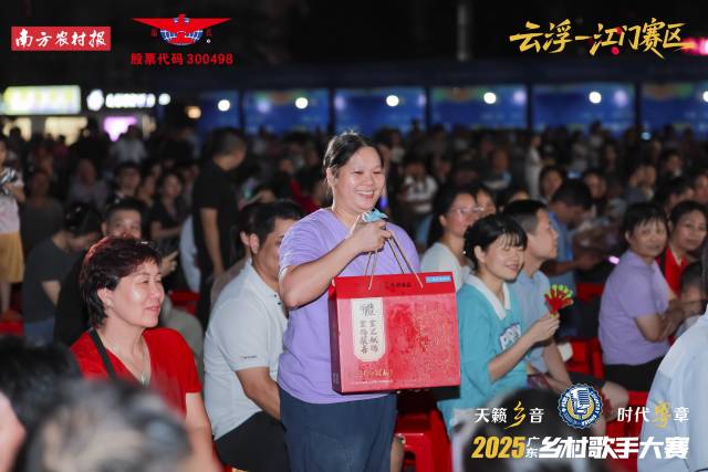 30位选手按抽签顺序分三轮登台,既有个人独唱,也有组合演唱,曲目原创作品,也有经典改编,部分还融入方言元素与传统乐器伴奏,让“乡音”更具独特韵味。台上精彩,台下欢乐。比赛设置了多轮抽奖及有奖问答环节,温氏天露鲜鸡蛋礼盒、葛根饮料、江门丰穗丝苗米礼盒等抽奖奖品,令获奖观众收获满满惊喜,“云浮最大养猪企业是哪家”“新兴香荔属于‘新兴三宝’之一吗”“新兴不锈钢餐厨具品牌有哪些”等有奖问答,则加深了观众对本土文化的了解,现场歌声、欢呼声此起彼伏。