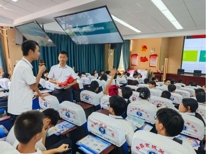 在数字化浪潮席卷的当下,电信网络诈骗手段持续翻新,青少年群体因社会经验不足、风险防范意识薄弱,正成为诈骗分子的重点觊觎对象。为守护青春“钱袋子”,筑牢校园安全防线,9月12日,邮储银行乐昌市支行联合当地多家商业银行组建“反诈宣传先锋队”,走进乐昌城关中学,为高中生带来一场集“知识科普、案例警示、互动体验”于一体的沉浸式反诈宣传活动,以金融力量护航青少年健康成长。
