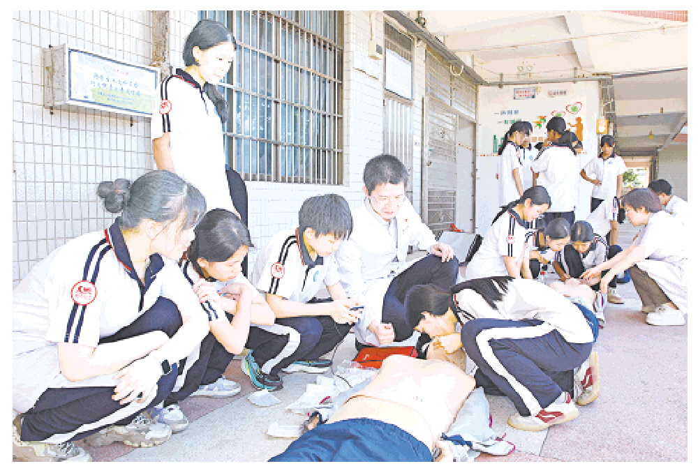 学生们纷纷化身“小小急救员”,在医学模拟人上进行心肺复苏,医护人员则对每个学生的操作都进行耐心指导和纠正,确保他们掌握正确的急救技能。