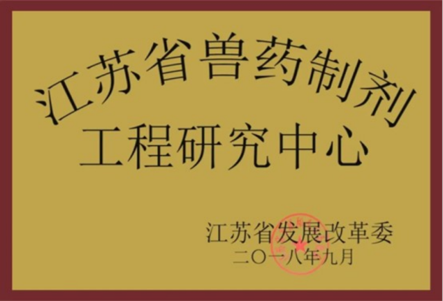 2018年 获得“江苏省兽药制剂工程研究中心”称号;获得“国家知识产权优势企业”认证企业