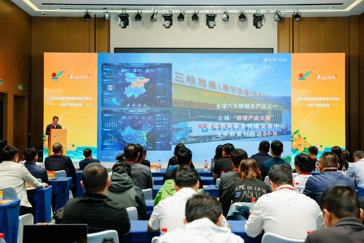 11月11日,2025年奉节脐橙全球订货会广东广州分会场活动启幕,活动以“奉节脐橙·自然天成”为主题,搭建起互动交流平台,与会嘉宾共同见证奉节脐橙的甜蜜绽放。活动现场签约成果丰硕,17 家采购商与奉节脐橙达成合作意向,签约总量高达 1.4 万吨,奉节脐橙正以“甜蜜实力”打动湾区市场。