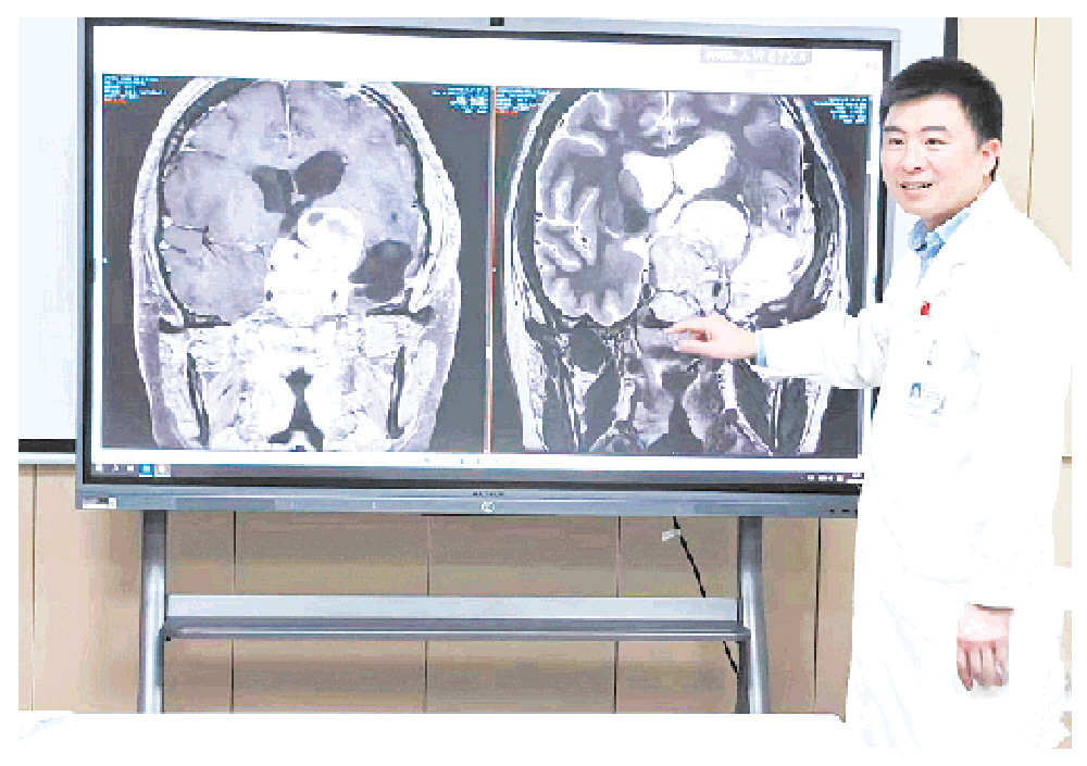 29岁的吴女士(化姓)不幸罹患超过7厘米的巨大垂体瘤,首次开颅手术后,肿瘤未全切,还出现了动眼神经损伤和偏瘫等严重后遗症。陷入困境的她,最终在暨南大学附属第一医院神经外科找到了希望。陈志勇主任团队通过多学科会诊,为她量身定制“分步走”个体化方案,成功控制病情。