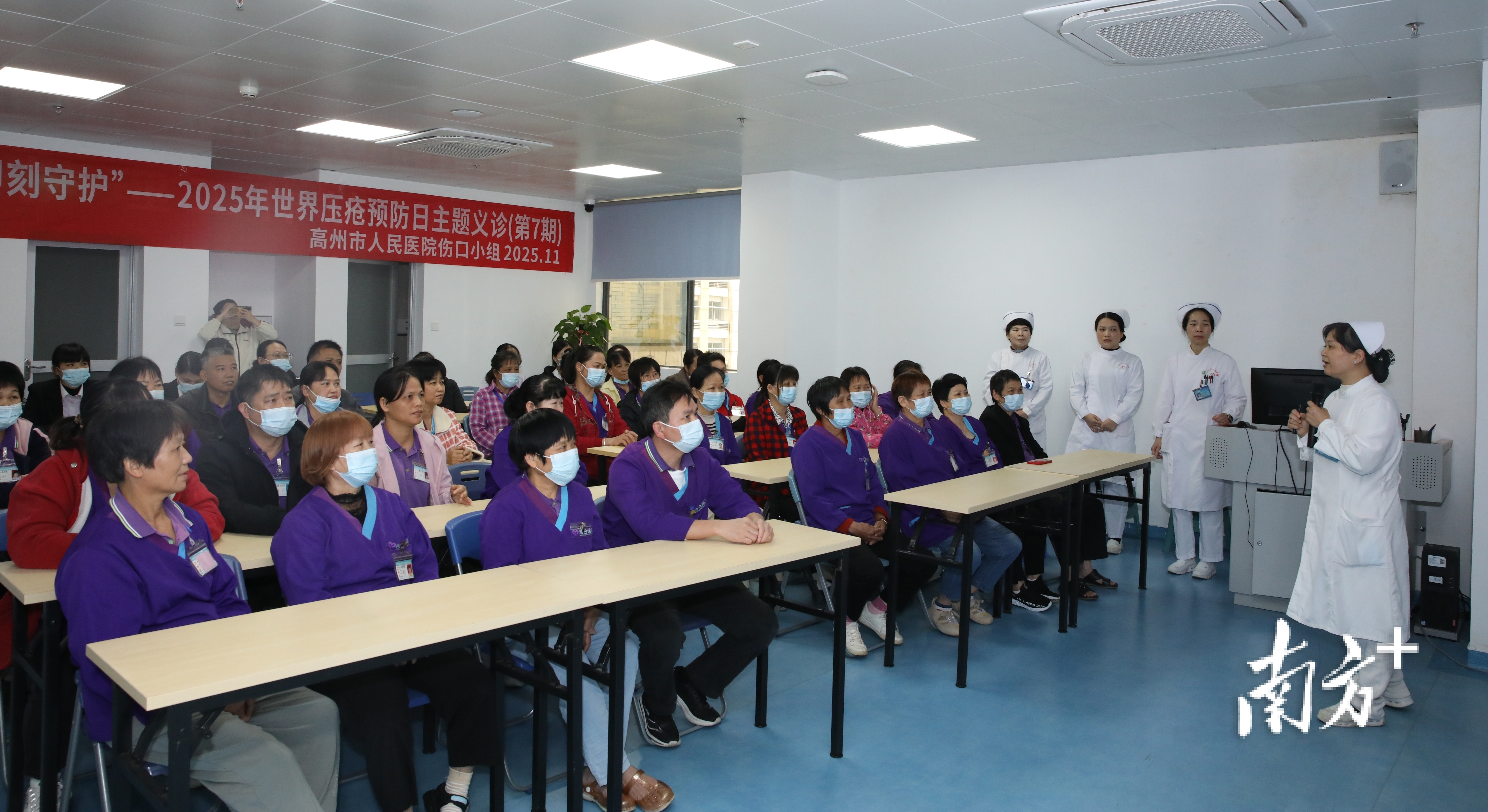 南方农村报讯 (通讯员雷云怡)在2025年11月20日第13个“世界压疮预防日”来临之际,为提高老年人对压疮(俗称“褥疮”)的防范意识,高州市人民医院近日组织伤口、中医、老年、肺康复四大护理专科骨干及医务社工,组成20余人团队,走进当地颐养院,开展“社区义诊+院内培训”系列健康服务,全面筑牢压疮预防屏障。
