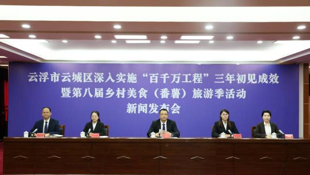 11月27日,云浮市云城区深入实施“百千万工程”三年初见成效暨第八届乡村美食(番薯)旅游季活动新闻发布会在云城区举行。记者从现场获悉,本次活动亮点多,周期长,将于2025年12月5日至2026年3月5日举办,开幕式系列活动定于2025年12月5日至7日在前锋镇大江头村举行。