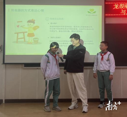 在心理健康知识普及环节,潮安区第三人民医院心理治疗师黄灿斌以《小学生心理健康技巧》为主题,为孩子们带来一场别开生面的心理健康课。黄医师通过生动有趣的讲解和沉浸式的情景模拟互动,循序渐进地引导学生认识情绪、理解情绪,掌握情绪调节的实用方法。整场讲座寓教于乐,孩子们在轻松愉快的氛围中不仅提升了心理调适能力和专注力,更学会了如何应对压力、开展有效社交等关键技能。孩子们全神贯注地聆听,积极参与,踊跃回答黄医师提出的问题,现场气氛热烈。