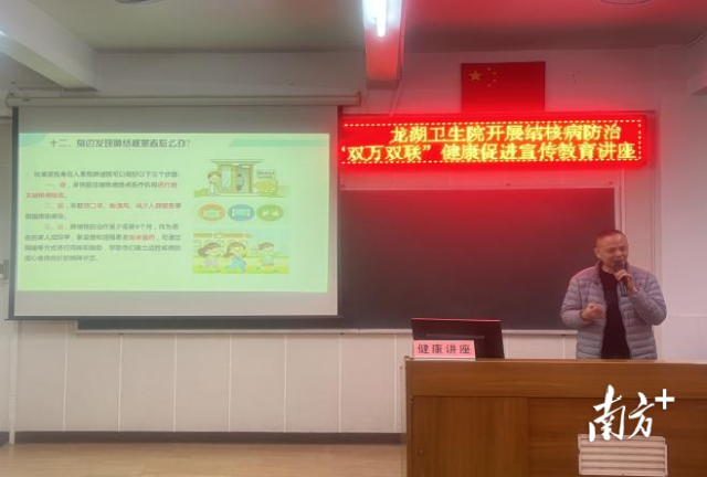 在结核病防控宣讲中,龙湖卫生院副主任医师许荣锋以《结核病防控》为主题,用图文并茂的课件和贴近生活的案例,为孩子们系统讲解了结核病的传播途径、常见症状及高危人群防护要点。他强调“早发现、早诊断、早治疗”的重要性,并详细说明了出现相关症状后的就诊流程与全程规范治疗的意义,引导学生树立“自己是健康第一责任人”的意识。
