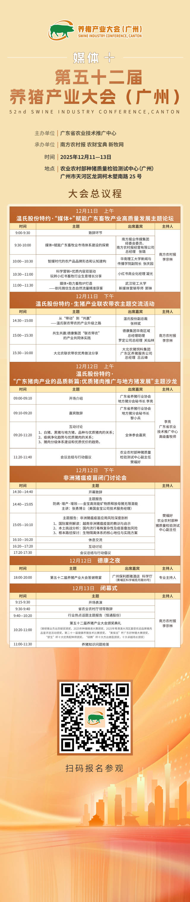 本届大会由广东省农业技术推广中心主办,南方农村报社、农财宝典新牧网承办,温氏股份、中芯种业战略合作冠名。